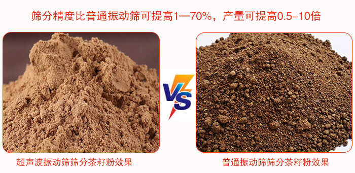 純天然茶籽粉,采用山區野生油茶籽或茶葉籽。富含天然茶皂素,能迅速去除油污,可清洗碗筷、盤子、鍋子、蔬菜、水果等,去油、去污能力非常強,好沖又好洗,不傷手,能分解蔬果中的殘存農藥。其獨有的殺菌、解毒、消炎、止癢的藥理功能,是一款純天然的洗發潔面產品。由于茶籽粉含有油性,用普通振動篩分設備沒法篩分,所以只有選擇超聲波振動篩,下面對這款超聲波振動篩獨特的質量優勢、性能優勢及價格優勢進行簡要介紹。