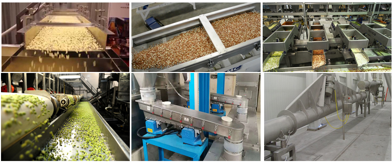 食品加工行業(yè):谷物、糖、咖啡豆、堅(jiān)果、蔬菜、水果等顆粒狀或塊狀食品原料的輸送和分配。